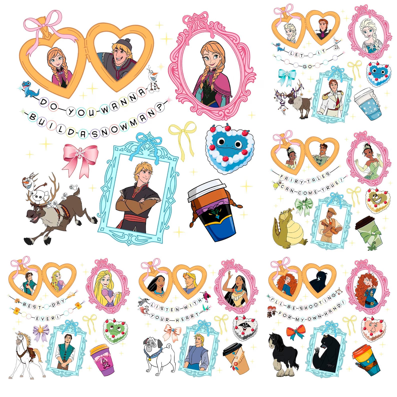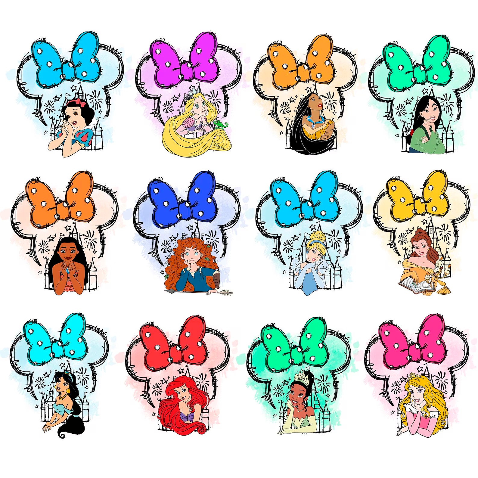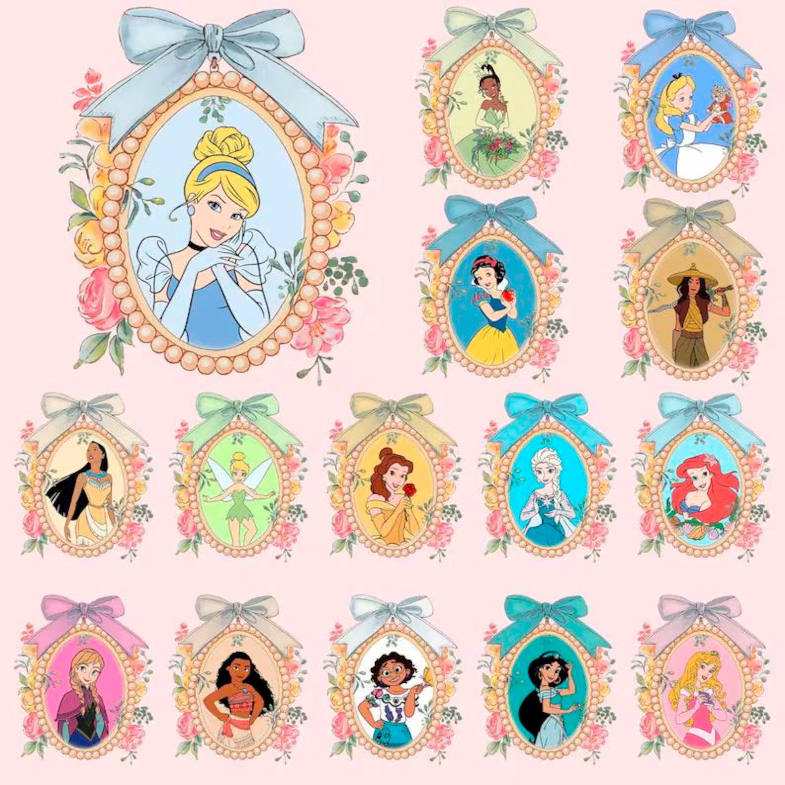 Disney Princess Png Bundle, 200 Files Princess Coquette Bow Png